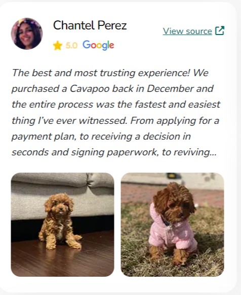 "I can't recommend this website enough for anyone looking to bring a new furry family member into their home. The website's commitment to connecting loving homes with healthy, well-cared-for puppies is truly commendable. My experience with this website was nothing short of amazing, and I am so grateful for the new addition to our family."